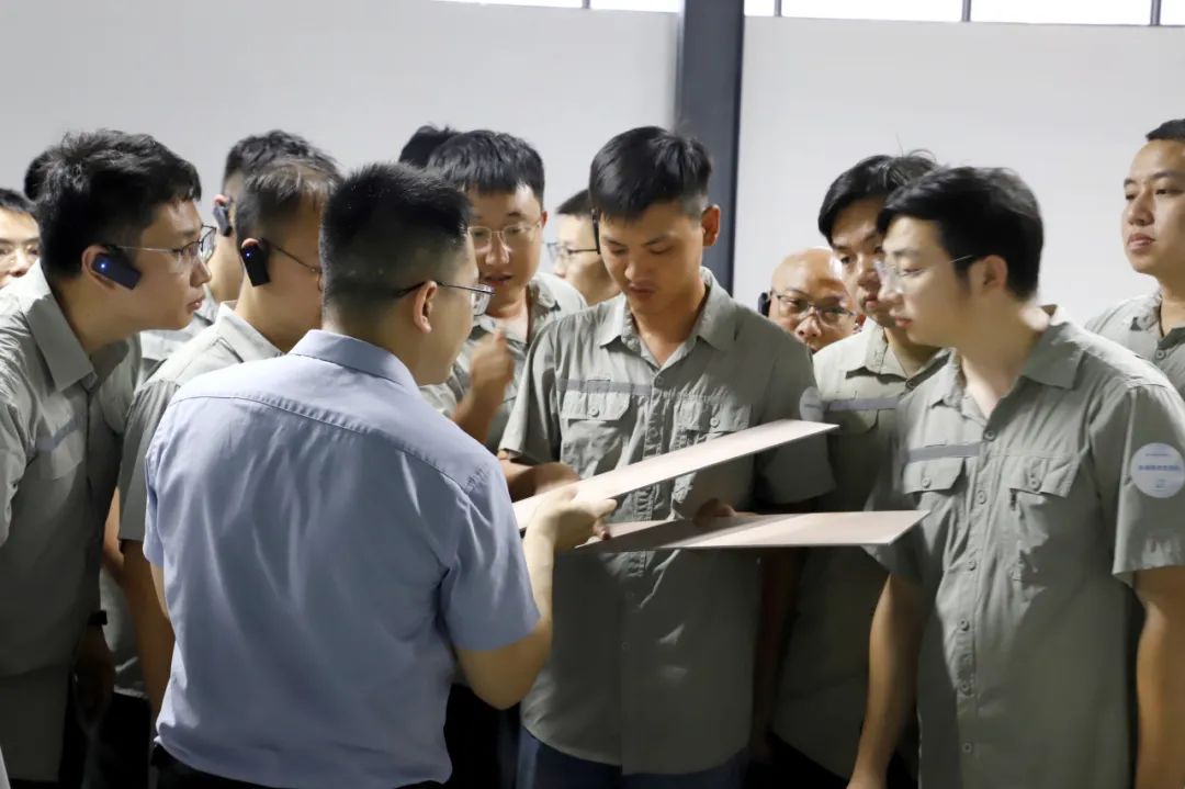 為了讓工程師們更直接地體驗(yàn)飾面板生產(chǎn)過(guò)程,來(lái)到3000㎡的體驗(yàn)中心。工程師們?cè)谖覀兊拇驑芋w驗(yàn)中心,親自體驗(yàn)了淋涂高光、3D壓紋、PUR平貼、準(zhǔn)分子膚感以及涂飾仿真同步壓紋等等工藝流程。工程師們與技術(shù)人員進(jìn)行了交流,更直觀地感受到了普瑞特在涂飾上的精益求精,獲得了工程師們的一致認(rèn)可。 萬(wàn)科工程師們帶著專業(yè)的問(wèn)題,與廣東瀚秋普瑞特技術(shù)團(tuán)隊(duì)進(jìn)行了深度交流。雙方在技術(shù)領(lǐng)域的智慧碰撞,共同探討中國(guó)智造的創(chuàng)新和方向。