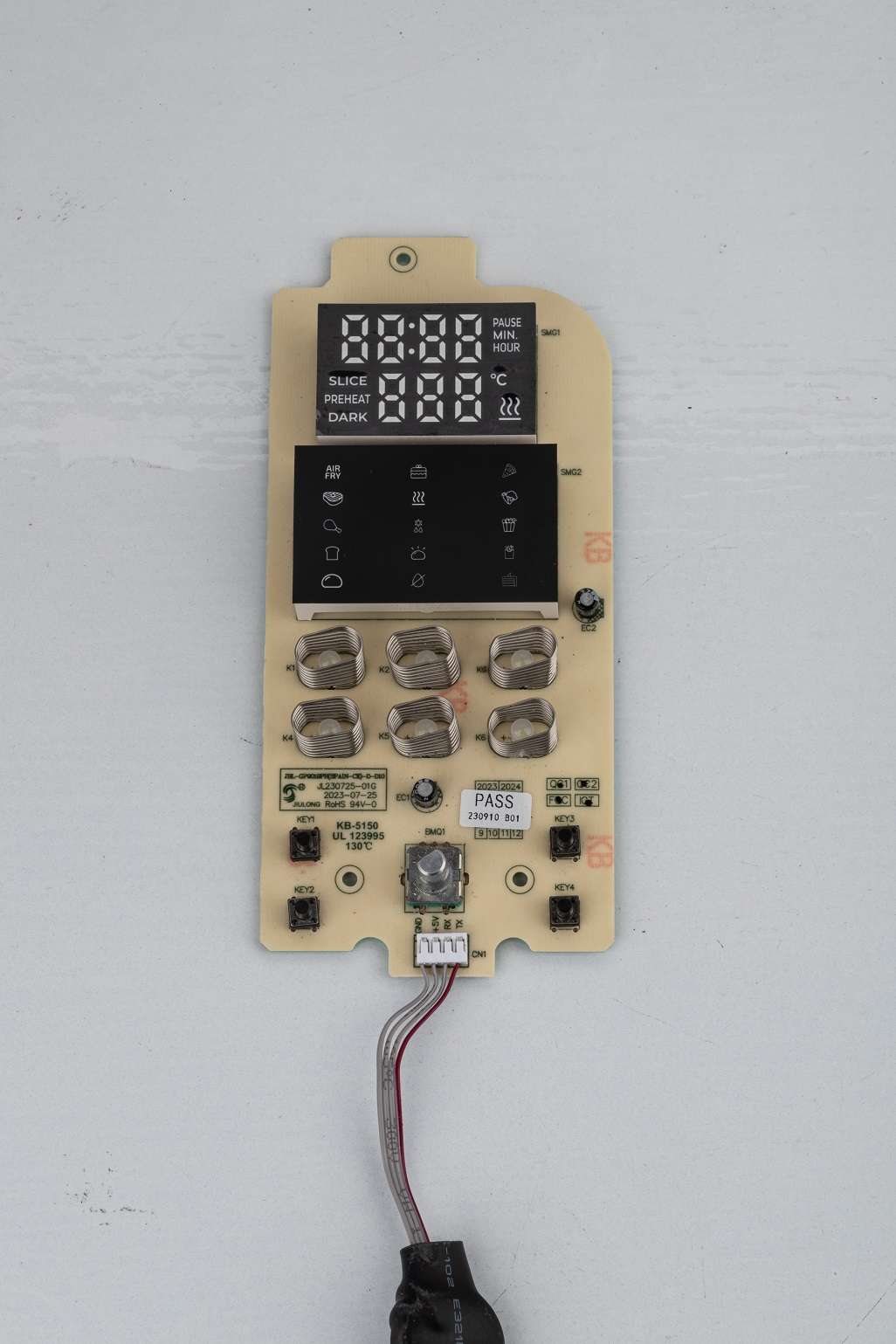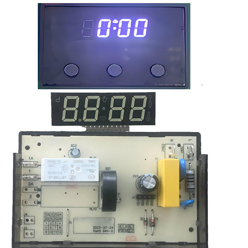 簡介:采用2個(gè)數(shù)碼管顯示,觸摸按鍵+編碼器配合操作功能, 蜂鳴提醒,傳感器控溫及故障報(bào)警 技術(shù)參數(shù): 電源電壓范圍:輸入電壓80-264VAC 交流輸入電源頻率:50/60Hz 工作溫度/環(huán)境濕度:-20~85°C,30%-95%RH 負(fù)載功率:發(fā)熱管220-240V , 1200W 罩極電機(jī):220-240V , 30W 功能簡述: 1、溫度可調(diào)范圍:60-200°C 2、時(shí)間可調(diào)范圍:1-90分鐘 3、延時(shí)散熱功能 4、有掉電記憶功能 5、有華氏度和攝氏度可選 6、有轉(zhuǎn)爐功能和門控開關(guān)功能 7、十四種菜單可以選擇